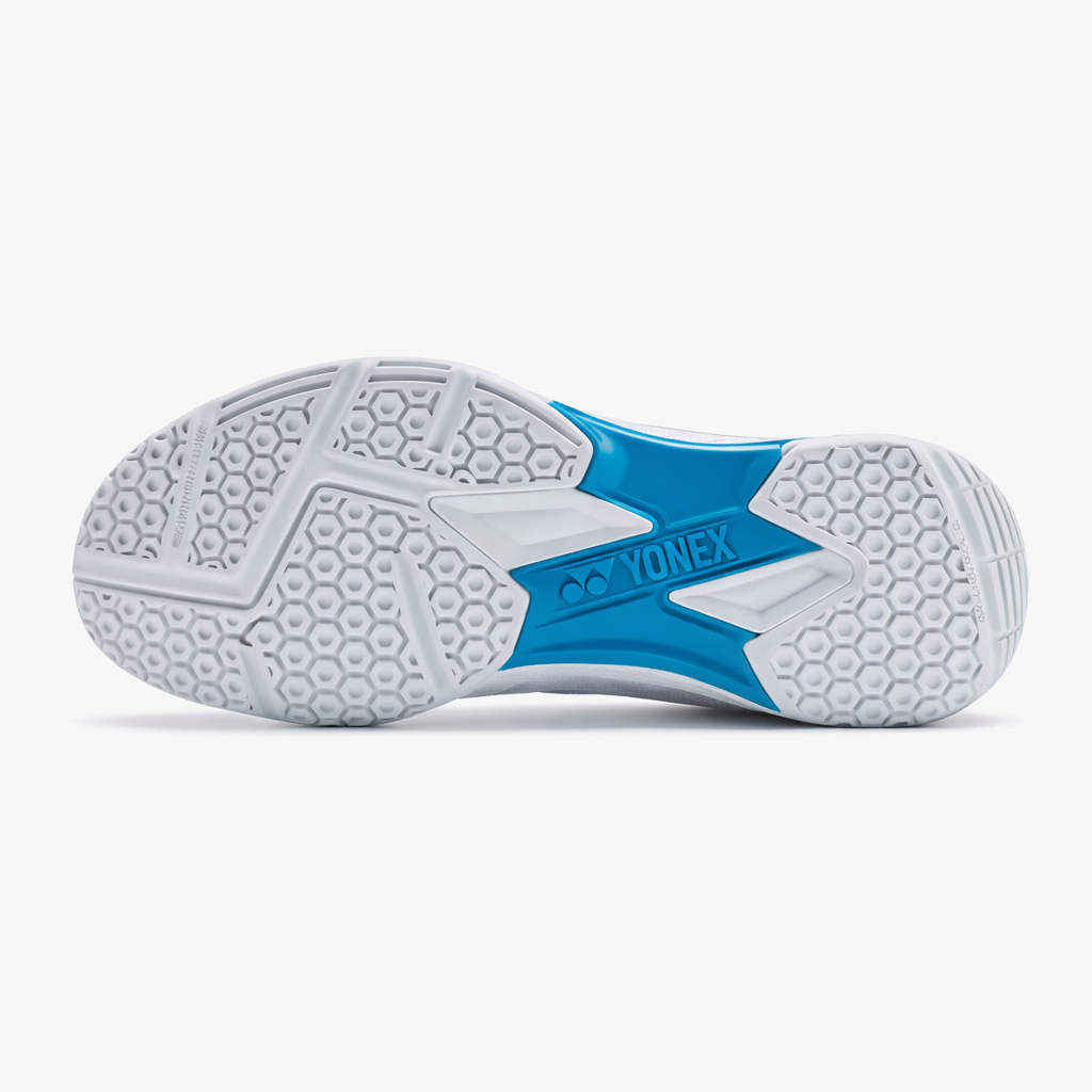 Chaussures indoor YONEX Aerus X2 White/Blue unisexe. Légères, réactives et confortables, idéales pour le badminton en club et les entraînements réguliers.