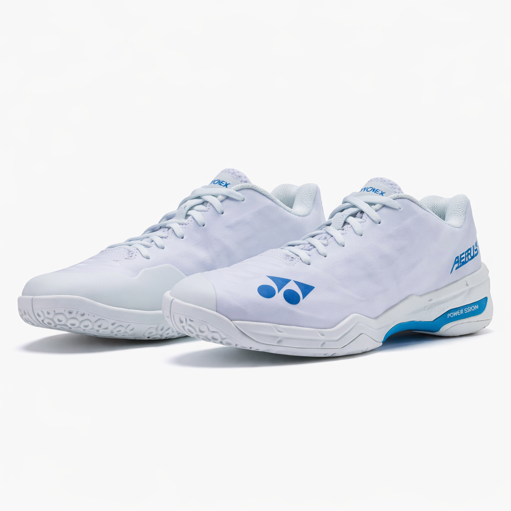 Chaussures indoor YONEX Aerus X2 White/Blue unisexe. Légères, réactives et confortables, idéales pour le badminton en club et les entraînements réguliers.