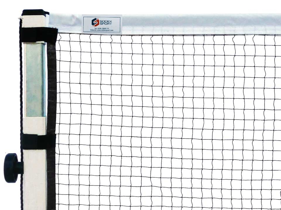 SODEX S27875 – filet de badminton compétition homologué FFBaD, 6,02 × 0,76 m, maille nylon nouée Ø 0,75 mm, bandeau PES, 5 velcros par côté, corde de tension intégrée. Filet seul.