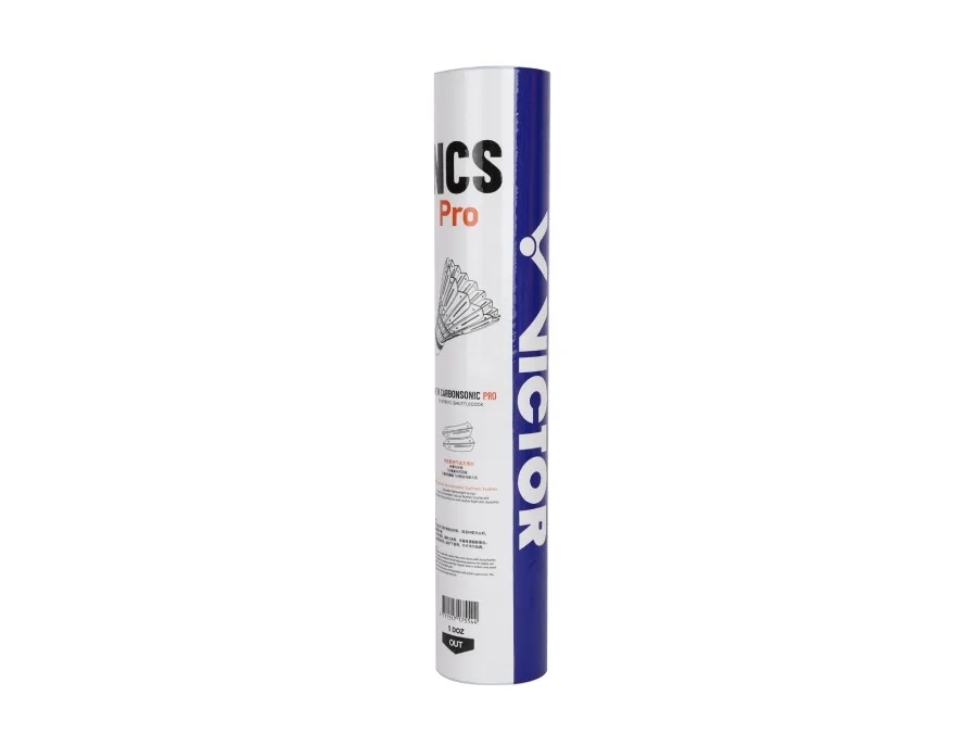 Volants de badminton synthétiques haut de gamme VICTOR New Carbonsonic Pro. Trajectoire stable, sensations proches du plume et durabilité renforcée. Tube de 12 volants, vitesses 77 ou 78.
